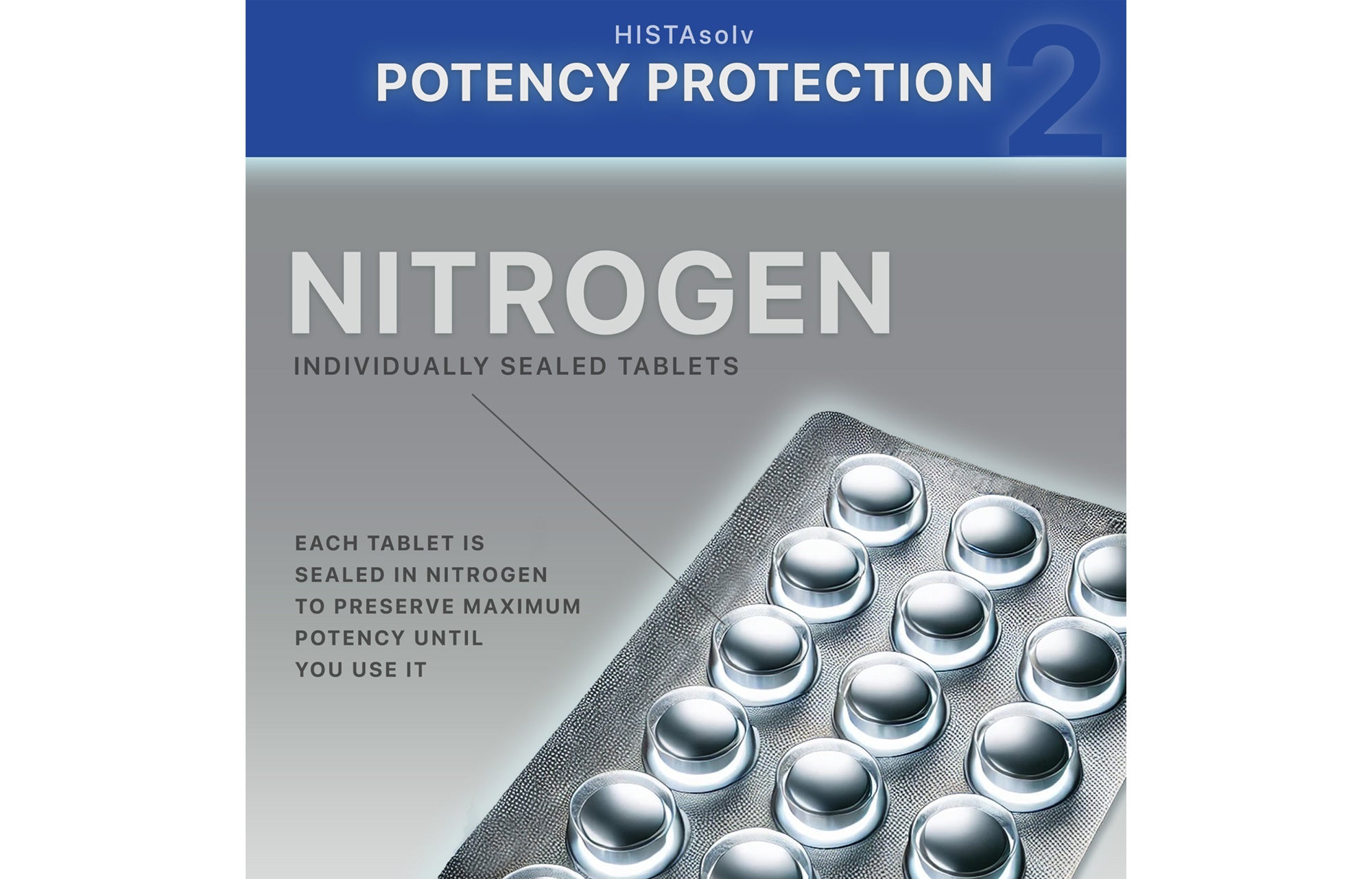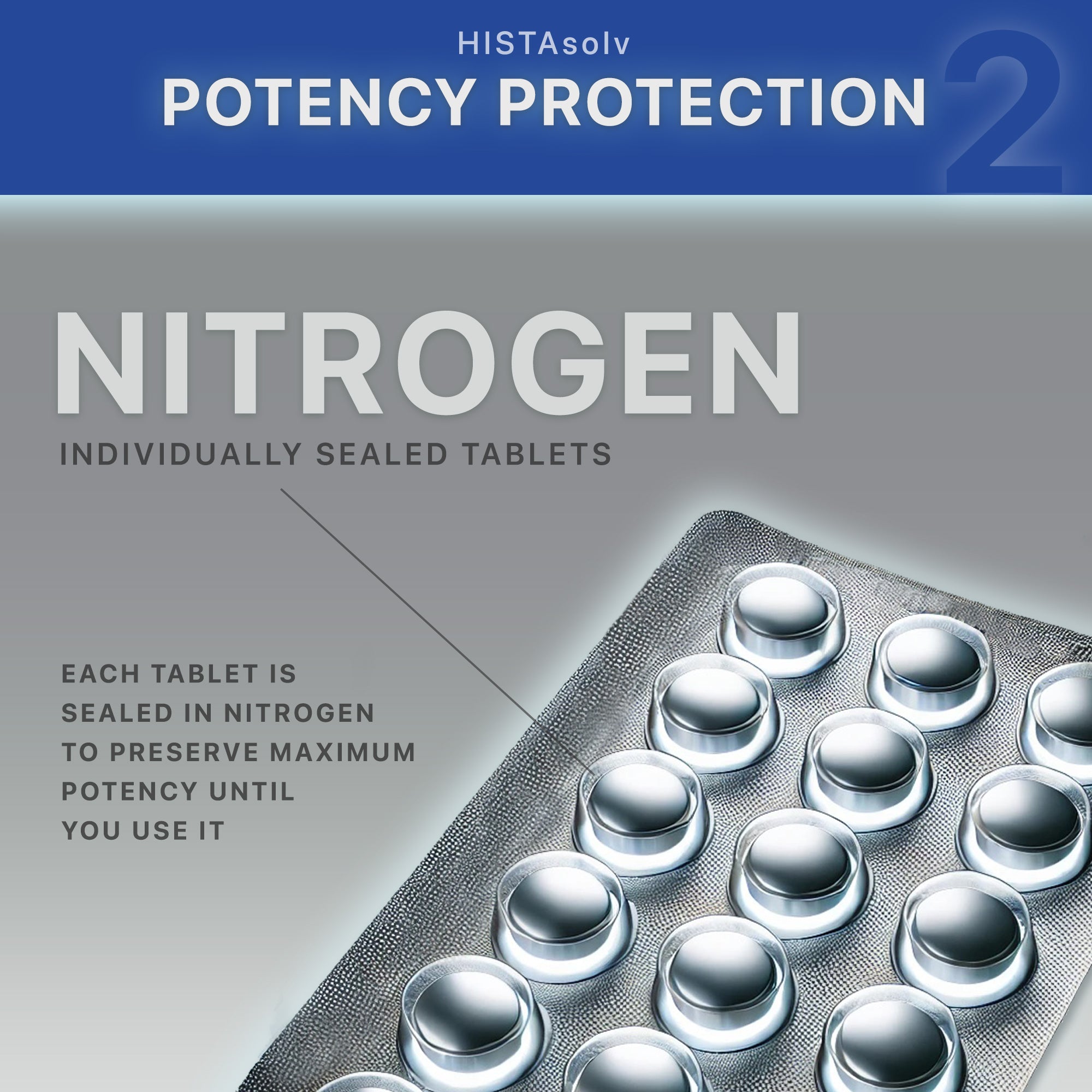 Each high-potency tablet is nitrogen-packed in a sealed blister and foil pouch, protecting it from air degradation to ensure freshness and maximum histamine-fighting power.