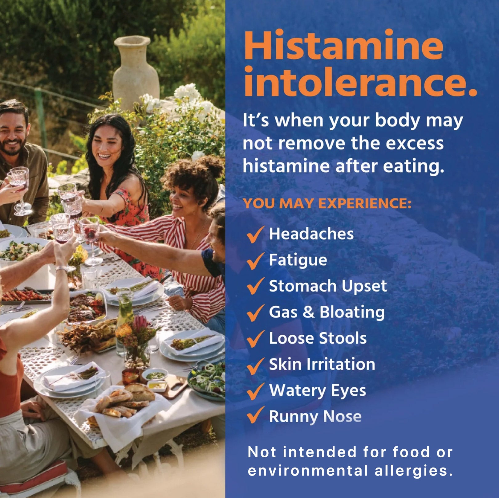 HISTAsolv provides fast, effective relief from histamine intolerance, helping you enjoy histamine-rich foods and drinks without the discomfort of symptoms like flushing, headaches, or digestive issues